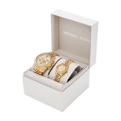 Michael Kors Lexington Chronograph His And Hers Gold Tone Stainless Steel Watch Gift Set Mk1047 Watch Station